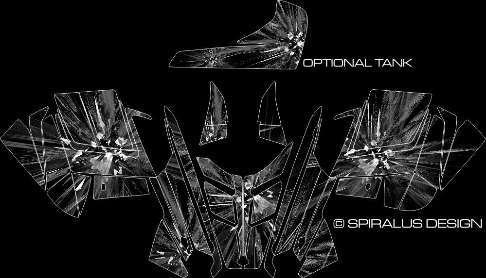 This wrap is printed on our EXCLUSIVE Pro Blend Vinyl for snowmobiles. Click here to learn more about our Pro Blend Vinyl. You can add the Pre Cut tunnel pieces and tank. Be sure to check out our EZ Install kit!
